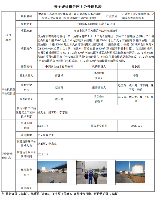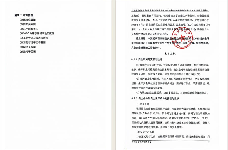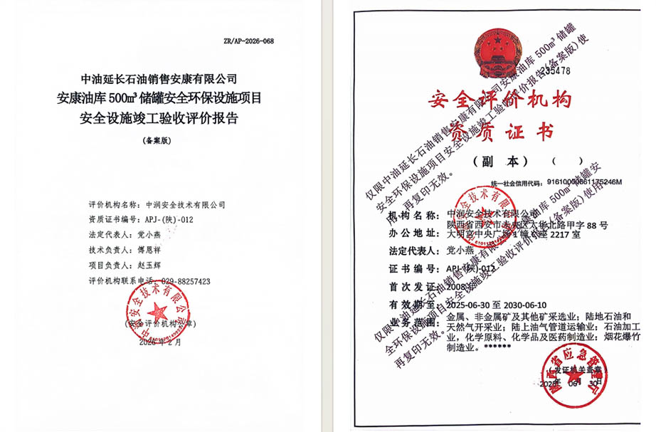 中油延長石油銷售安康有限公司安康油庫500m3儲罐安全環(huán)保設(shè)施項(xiàng)目安全設(shè)施竣工驗(yàn)收評價報告