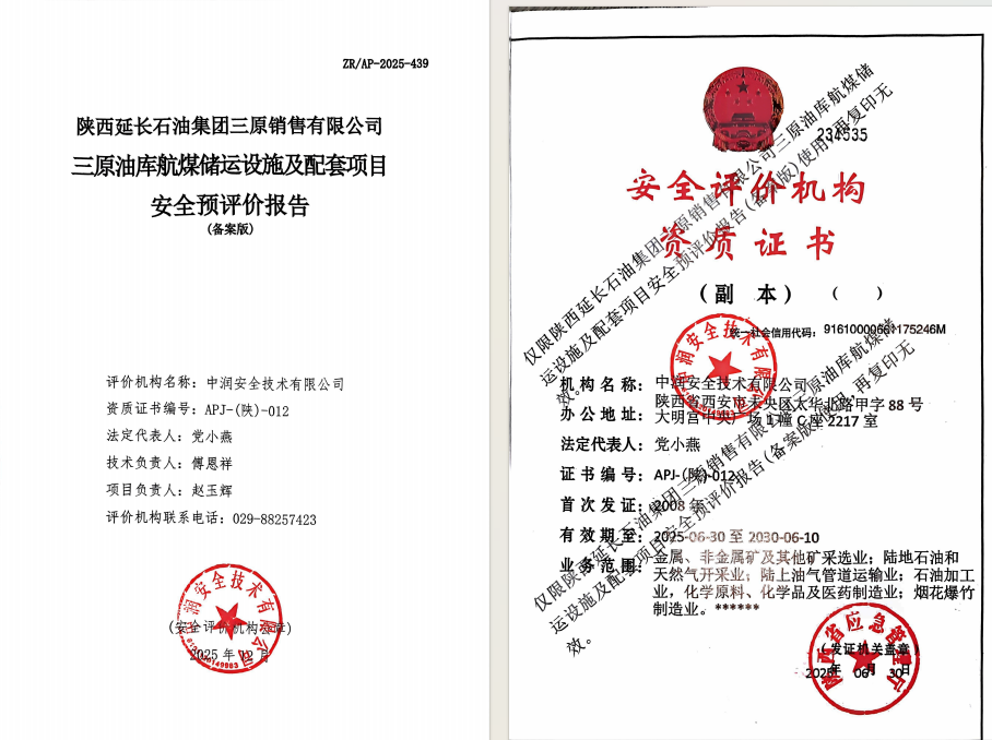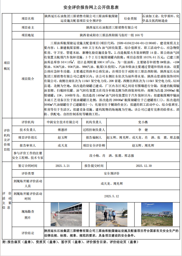 陜西延長(zhǎng)石油集團(tuán)三原銷售有限公司三原油庫(kù)航煤儲(chǔ)運(yùn)設(shè)施及配套項(xiàng)目安全預(yù)評(píng)價(jià)